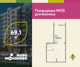 В продаже помещение свободного назначения 20 в готовом ЖК Ново Молоково (более 15 000 жителей). Прямая продажа от застройщика, помещение с ключами. Подходит для открытия street retail: супермаркета, аптеки, кофейни, коворкинга и тд. Общая площадь 69.1 м2, основн...