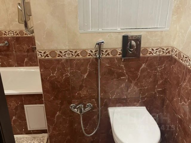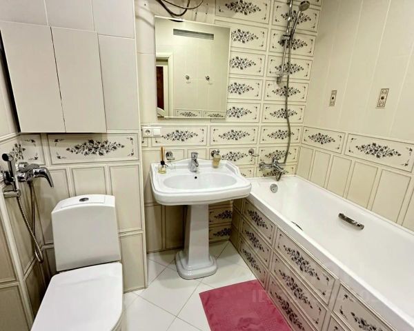 Санузел совмещенный, выполнен в светлых тонах из плитки. Есть балкон и лоджия, застекленные.